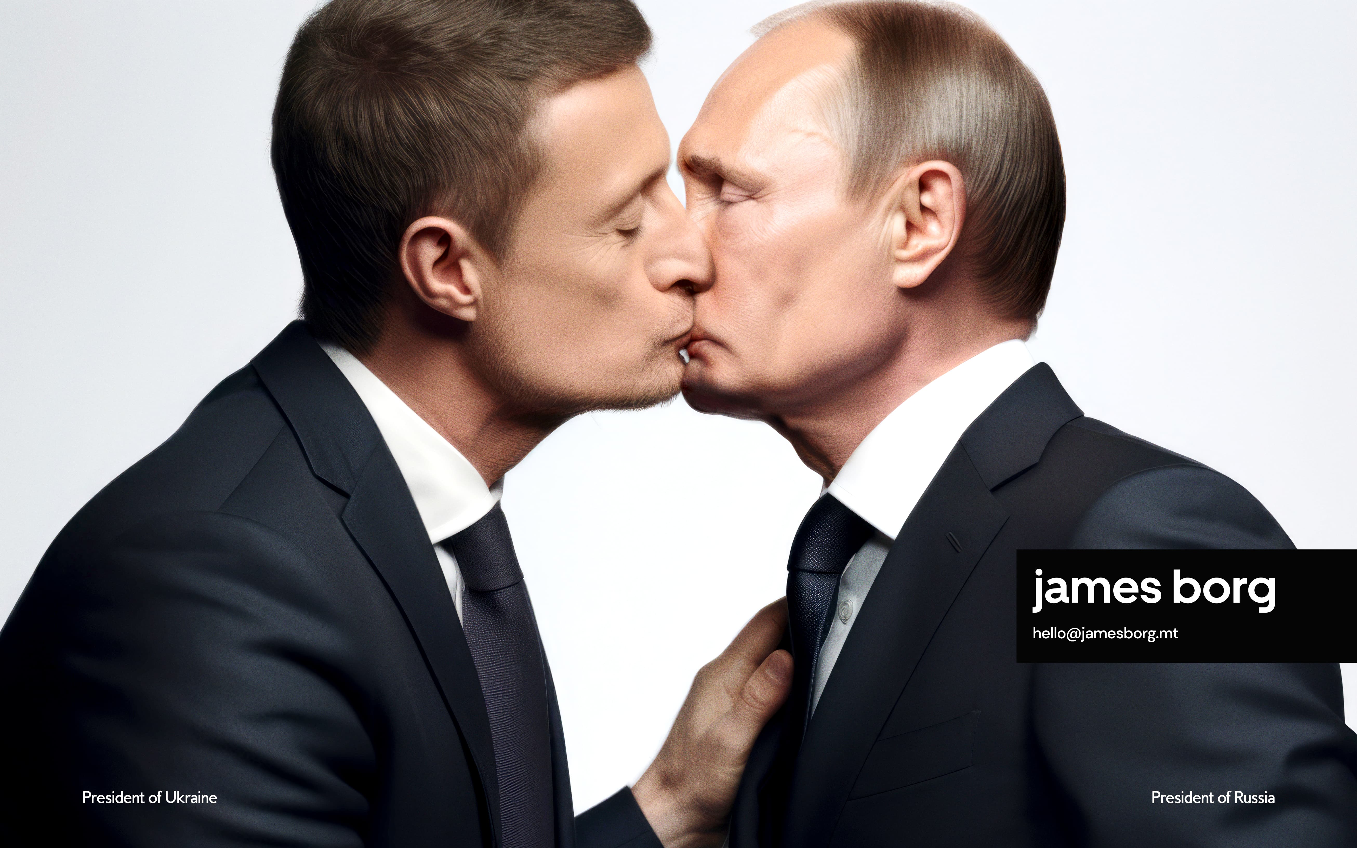 As an excuse to experiment with the newest AI tools, I set out to re-imagine the ad campaign from a contemporary lens – tossing out the Pope and placing Zelenskyy in his stead.